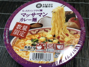 もう一つこのシリーズでの「グリーンカレー混ぜそば」がありましたが、個人的には汁がある麺が好きなので今回はパス。こちらは160円(税別)とのこと。MOとしては超ハイレンジ