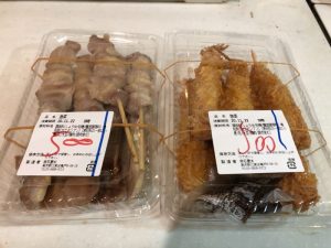 今日は1パックに焼き鳥は9本、海老天は7本入ってました。