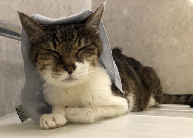 しかし、なぜか長男猫は先にお風呂を出て、出待ち。そして、「お帰りー」と言わんばかりに、風呂からあがって十分に乾いていない私の足にごっつんごっつん、スリスリ…猫毛が張り付いて、妙にチクチクするし、それをバスタオルで拭くと、その後で身体や顔を拭いた時に身体のあちこちに猫毛が張り付くという…さっきまで見つめ合ってお風呂に入ってたでしょ…