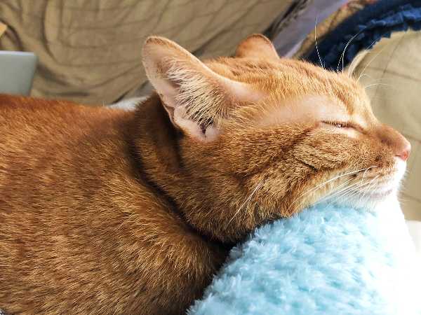 三兄妹には似てるところもたくさんありますが、抱っこがキライ、箱に入るのも好きじゃないというところは明らかに違います(三兄妹は待ち行列を作ってでも抱っこや箱を待ってたものですが)。また我が家に来た翌日くらいから布団で一緒に寝るようになりましたが、布団IN派の三兄妹と違って姫ちゃんは布団ON派です。やっぱり狭いところは苦手?