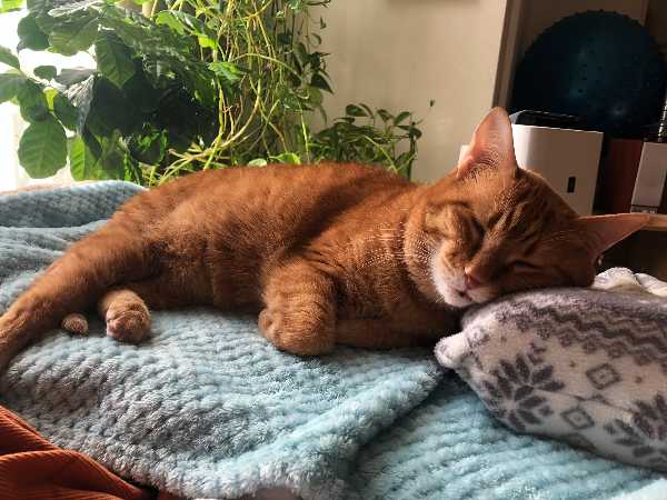 湯たんぽの上で寝るかと思いきや、「枕」としてよく使っていました。人間がやると頭がぼーっとしそうですが、本猫が良いならそれで良いか…