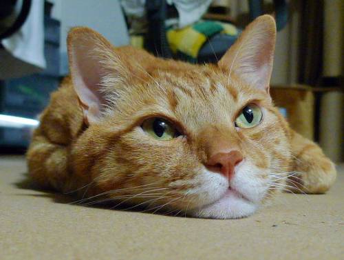 現場へ向かう私とシレっと行き違って離れる長女猫は、犯ニャンとして捕まえるのが難しいのですが、事情聴取をするとぷいっと顔を背けるのでバレるのです。「あたいはやってない、見てただけ」とでも言いたげです。普段は顔をあわせても目を見つめてくるのですが、叱られそうだと分かると、徹底的に目を合わせず、顔を背けるのです。ただ、叱られても一番しょぼんとしないのが長女猫。悪女です。