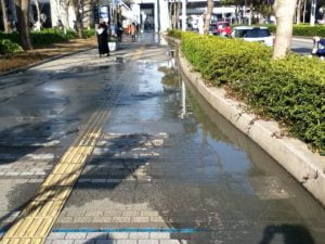 歩道に液状化現象が起きて泥水が吹き出してるのを見たのも初めて。