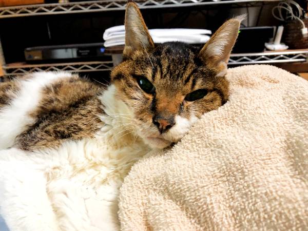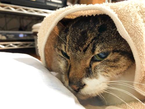 もうさすがにカリカリは無理みたいですし、頼みのメルミルも少し舐めるくらいでお食事は終わりになってしまいます。食べ残しはシリンジでお給餌して、絶食にはならないようにしています…カロリー的には足りないとは思うんですが、ゼロよりは良いかと。浮腫も解消したし、オシッコも量は少し少なめですがそれなりに出ているので、全身の状態を見ながら皮下点滴も再開しています。