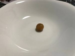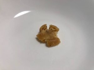 指で簡単に潰せます。温度が低いせいか水分が足りない感じですが、指で捏ねるとそれなりに粘度が出てきます。