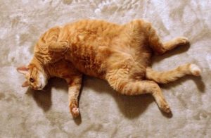 長男猫の場合、体重が7.5キロ強までなったこともあり、身体を動かすのが億劫になるのが早かったのです。長女猫や次男猫がすいすい本棚の上に駆け上がっていくのに、長男猫は、途中のキャットタワーの前で悲しげこっちを見ながら「上に乗せてくれー」とよく鳴いてました。加齢とともに脊椎の軟骨がすり減って痛みがでたこともありますが、少々、適正体重を超えた期間が長かったのは良くなかったのかもしれません。遊んでやっても一番最初に息が上がってましたからね…。
