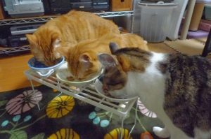 膀胱炎や尿路結石などから急性腎不全を発症して慢性化することもあるので、オシッコまわりの病気にはならないように…低マグネシウムのフードを選んでいたこともあり、三兄妹は尿路まわりの病気にはならずに済みました。長男猫は引越しの時のストレスで、長女猫は原因は不明の膀胱炎になったことがありましたが、このあたりの病気とは割と無縁でした。あ、トイレは多めにしておく(頭数+1以上)のも大事だそうですね。