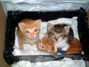 眼が開いていてもよく見えてないキトンブルーの眼をしたチビ猫たち。