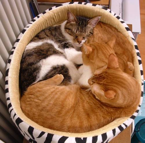 若い頃は私も仕事で忙しく、夜帰るのが遅くなることもしばしばでしたが、兄妹で団子になって待っていたようで、留守番のストレスは少なかったようです。ワタシが帰宅したのに一番に気づくのは長男猫、つられて弟妹が起きてくるという流れなのですが、長男猫は出迎えに律儀だったなあ…あと、「行かないでー」の演技もしてくれました。(一度玄関を出て忘れ物を取りに帰ると寝てること多数)