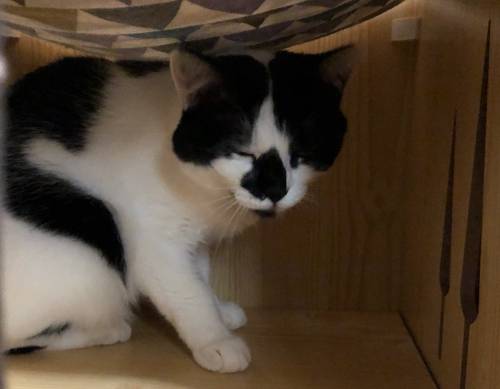 まだお若いのかな?隠れていたスペースに手を入れると「しゃーーーっ」と静かに威嚇…ただ猫パンチは出ませんでした。忠太郎くんがオヤツを食べてるのが気になっていた様子。クリスピーキッスを床に置くと嬉しそうに食べてました。ただ、お代わりを置こうとすると「しゃーーっ」。この子が懐いてくれると嬉しいだろうな…。