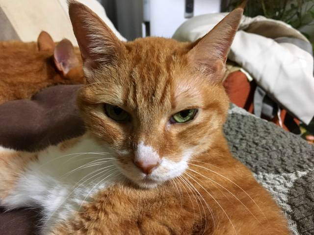 くねくねしながら「撫でて~♪」とすり寄ってきて、自分が飽きるまで膝の上にいて、撫でる手を休めていると催促して鳴き、それでも撫でなかったら、気分を害して爪を出した手で顔を猫パンチしてくる横暴さもありました。