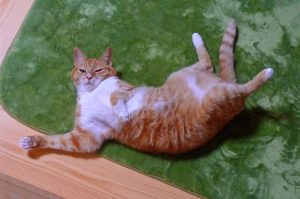 我が家で猫が人間の気を引くのに最もよく使った手口は、歩いているときに眼の前でドテッと倒れてくねくねしたり、足に前足を絡みつけてジャレつくことでした。