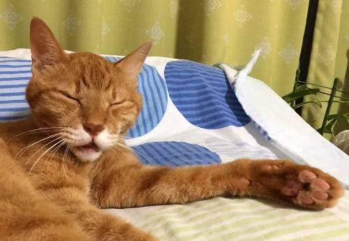 シニアになってからは、ほとんどの時間をこういう顔をしていました。長男猫なんかは無防備に口をぱかーんと開けて寝ているのもよく見ました。