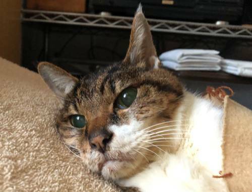 ただ、次男猫の末期は、能面のような無表情になる時間が多くなりました。人間も認知症になると表情が乏しくなるといいますが、猫も同じなのかもしれません。末期になると鳴かなくなりましたし…遠くを見るような、それでいてちょっと透明感のある顔でした。