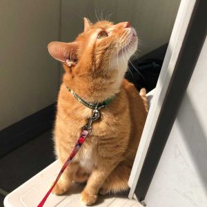 あと、秋になってくると夏以上にベランダに出たがるようになりました。事故防止のためリードをつけていますが、気持ち良さそうです。