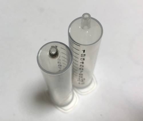 これまで、2.5ml、5ml、10ml、20ml、30mlのシリンジを用途に併せて使ってきましたが、個人的には使い勝手の良さは10mlがベスト。ポンプを押す力をコントロールしやすいのが嬉しい。