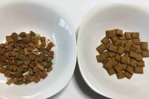国産ペットフードメーカーさんのシニア食は、粒が小さくて薄いものが多く、口腔トラブルがあったり噛む力や飲み込む力が落ちているシニア猫にも食べやすそうです。