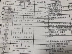 長女猫は8月下旬くらいから体調が崩していて、色々な検査を受けた結果が残っていましたが、腎臓の数値が明らかに悪く、今の私がみてもちょっとびっくりする数値です。