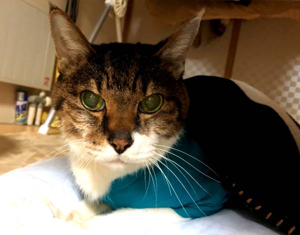 眼については病院でも診ては貰っていて、「まあ、あんまり見えていなさそうですね」とのことですが、かといって濃厚検査や積極治療をするかと言われると何とも難しいところです。こちらの検査や治療で腎臓の悪化に拍車がかかるとそれこそ命に関わるので慎重にならざるを得ません。腎不全も末期になると腎臓に負担のかかる麻酔やクスリの選択肢が狭まる…うーん。