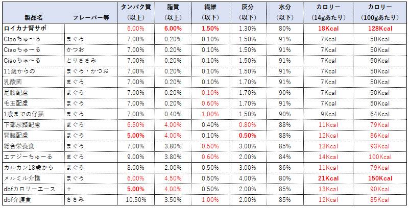 弱っている猫にはタウリンを増やしたりカロリーを高めにした「エナジーちゅ~る」だったり、関節に配慮した製品にはグルコサミンやコンドロイチンを添加するなどした製品であるということは知っていましたが、そもそも栄養成分に差があるのかまでは調べたことがありませんでした。