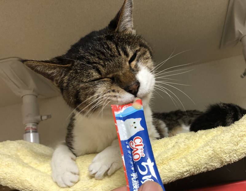 食い意地がはった長男猫だったら、「輸液したらちゅ~るが出る」ということくらいは容易に学習出来たはず。今だったら、3ニャン居ても流れ作業のように自宅輸液をしてあげられたはずで、晩年でも、もっと身体をラクにしてあげられたのになあとしみじみ思い出しています。