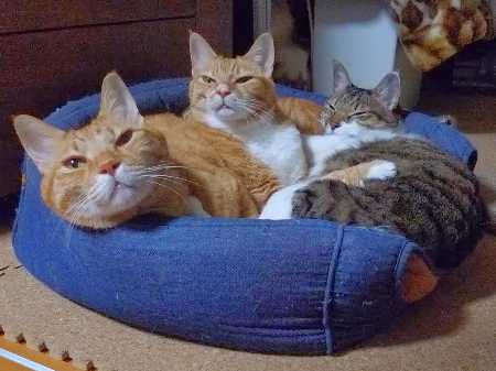 冬になると三兄妹で猫団子になって暖をとっておりました。当時はなんてことのない光景でしたが、今思えばなんとも羨ましい構図です。仲良しでしたからねえ!生まれたときから18年も猫団子を作っていたので、みんな職人でした。
