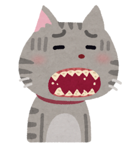 呼気に尿毒素やアンモニアが含まれることで、口内粘膜がただれて口内炎になることがあります。呼気がシッコくさい猫ちゃんの場合は要注意です。口内が痛いと食べるのがイヤになるのは人間も同じ。