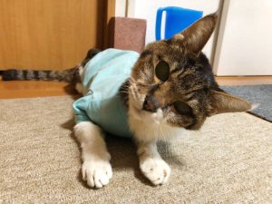 今朝は、よくよく見ないと傾きが分からない程度にまで回復しました。酷い時は酔っ払いの千鳥足みたいな歩き方をしていましたが、今は普通にスタスタ歩いています。相変わらずゴハンも水も自力で摂れていますし、粗相やオネショもなくトイレは自力完結、夜のニャルソックも律儀に継続しています。