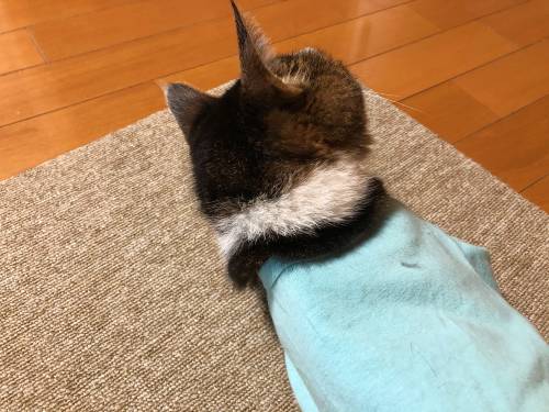 痛そうにしたり、苦しそうな雰囲気もありません。数日前の食欲ゼロの時に比べたら元気な方。ただただ、首が曲がっているだけで。