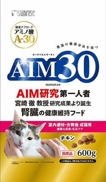 AIMは、これまでのような「血圧を下げて腎臓への負担を下げる」とか「血管を拡張させて腎臓への負担を下げる」というやや遠回りの方法ではなく、そもそも腎臓の細胞が死なないように、本来は猫も持っているAIMに腎臓を始めとする体内のゴミを掃除させるという新しいアプローチです。何より、「猫が30歳まで生きる」というコピーがインパクト大きすぎです。